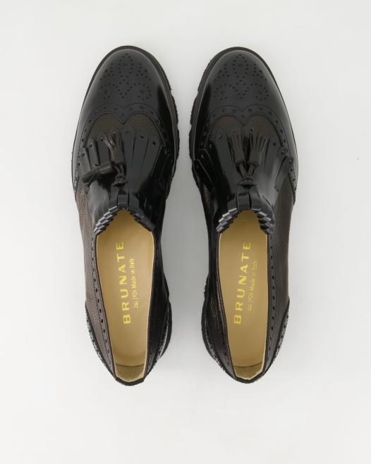 Entdecken Sie den exklusiven Slipper 11076 von Brunate in elegantem Schwarz, gefertigt aus hochwertigem Leder. Dieses Damenmodell besticht durch erstklassige Verarbeitung und exzellenten Tragekomfort. Die weiche Lederinnensohle und die Extra-Light Gummisohle sorgen für eine angenehme Fußunterstützung. Mit einem dezenten Absatz von bis zu 3 cm vereint der Schuh Stil und Bequemlichkeit. Kombinieren Sie ihn mit einer eleganten Hose oder einem stilvollen Kleid für anspruchsvolle Looks. Sichern Sie sich dieses exklusive Modell und setzen Sie ein Zeichen für Luxus und Qualität in Ihrem Schuhschrank.